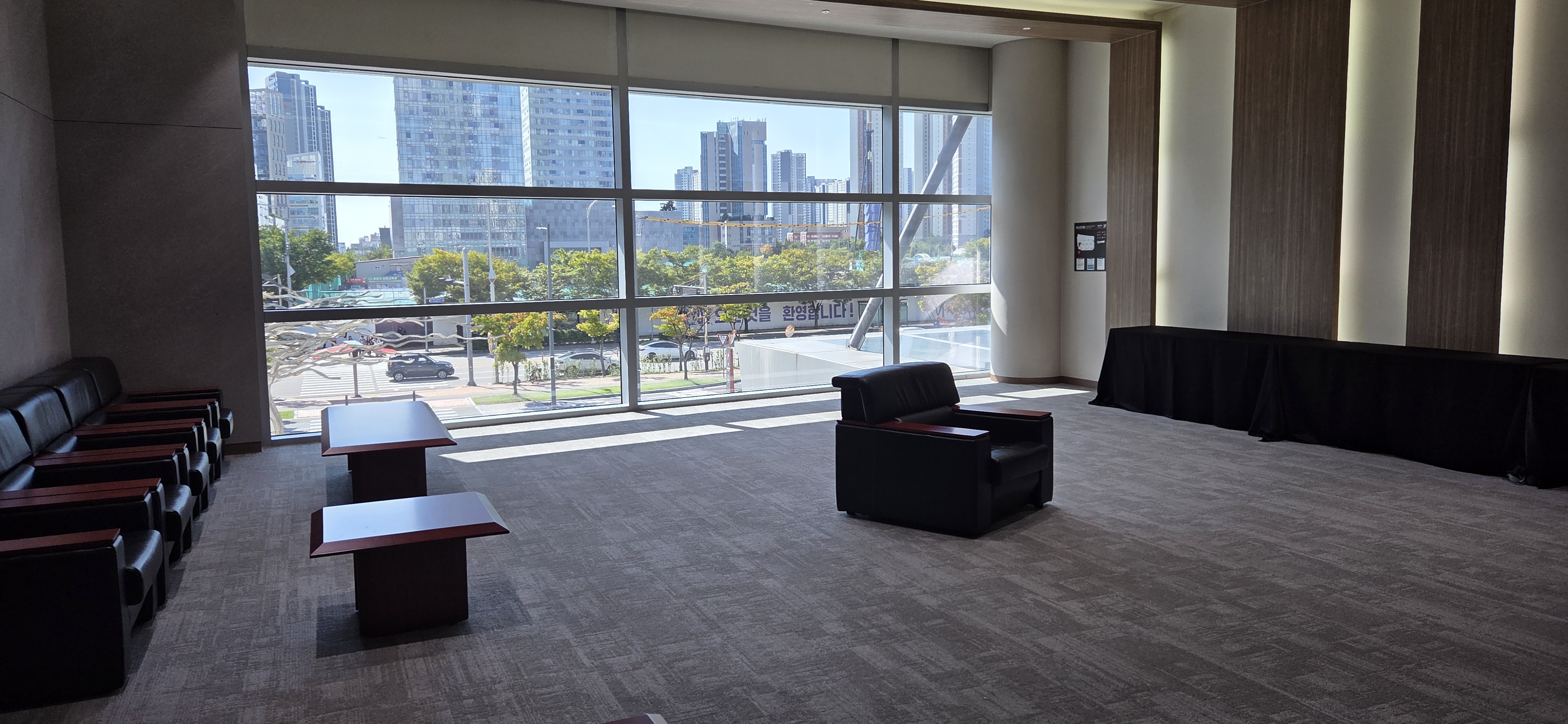 다만 네트워킹라운지는 보시다시피 휑하다. 강연차 참석한 외국인들을 위한 자리로 배정한 것은 아닌지.....네트워킹만찬은 따로 송도컨벤시아 옆에 있는 오크우드호텔 37층 그릴앤바에 마련된다고 들었다. 주최측 관계기관 기관장들과 초청 강연하고 자고 가는 외국 강연자들의 만찬장이 되리라.