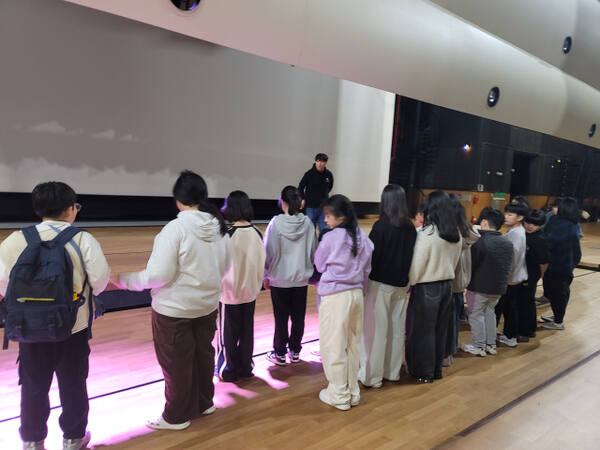 이어 조명감독의 안내를 받으며 LED 무빙라이트, 조명 콘솔 조작, 빔프로젝트 색 변화 등 조명 연출 원리 체험과 음향감독의 양이 효과, 리버브 원리, 마이트와 믹서 등을 다뤄보며 공연이 빛과 소리로 완성되는 원리를 이해하는 각별한 시간도 가졌다.