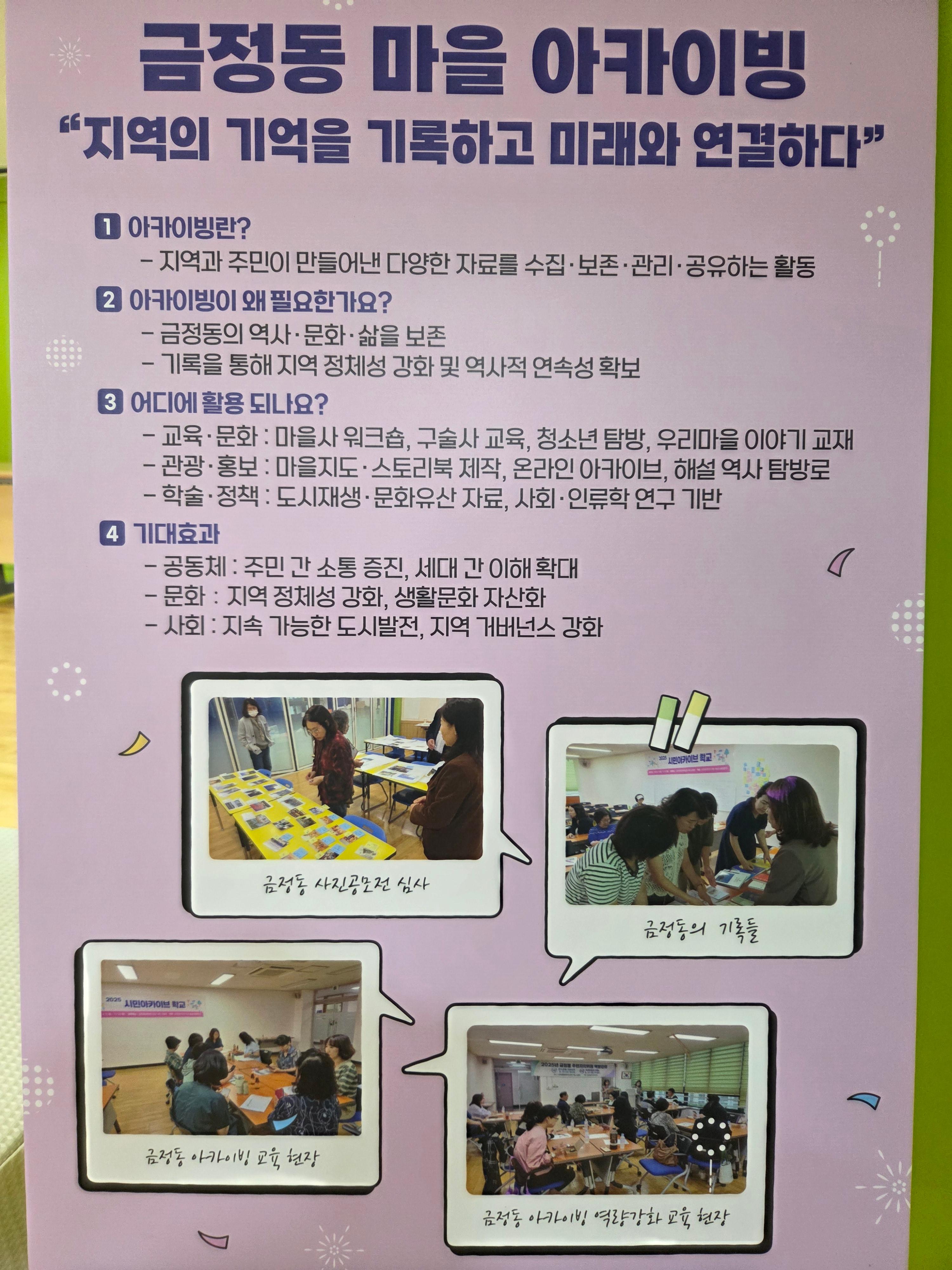 군포 금정동의 경우에도 1990년대에는 군포시청 홍보실 차원에서 옛모습 사진전을 공모하거나 기록으로 남기려는 모습을 보였으나 지금은 잊고 지낸다. 이번 전시에도 1968년 사진이 가장 오래 된 사진으로 출품됐다.