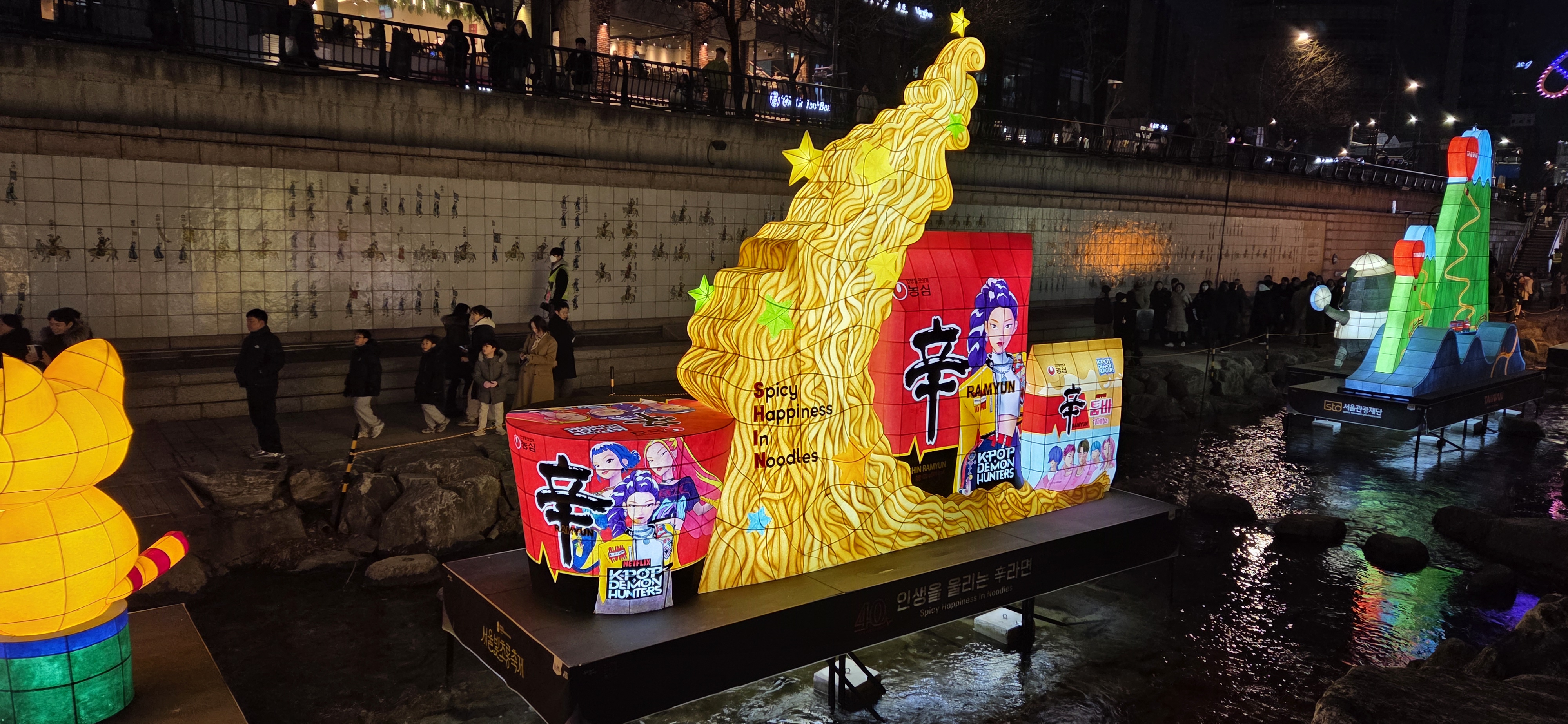 안동시는 하회탈과 각시탈을 세웠고 공연중인 뮤지컬 한복입은남자는 양면로고를 띄웠다. 농심은 케데헌 특선라면과 너구리 로티를 예쁘게 내세웠다. 이마트의 경우에는 고뤠잇을 위해서만든 고래를 등으로 만들어 세우고 받침대에 이마트를 넣었다. 설명을 보지 않고는 마스코트 고래가 아미트와 쉽게 연결되지 않았다.